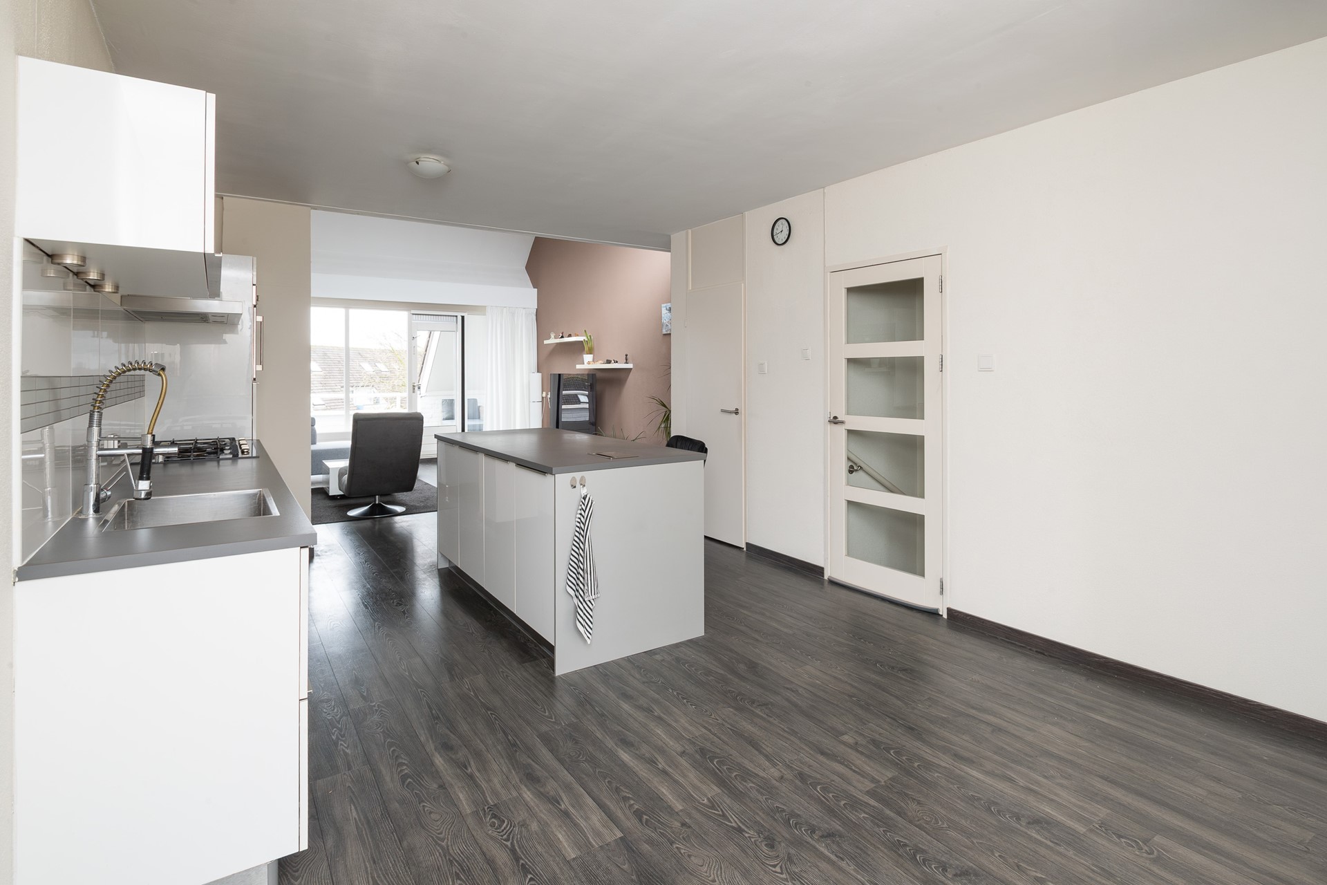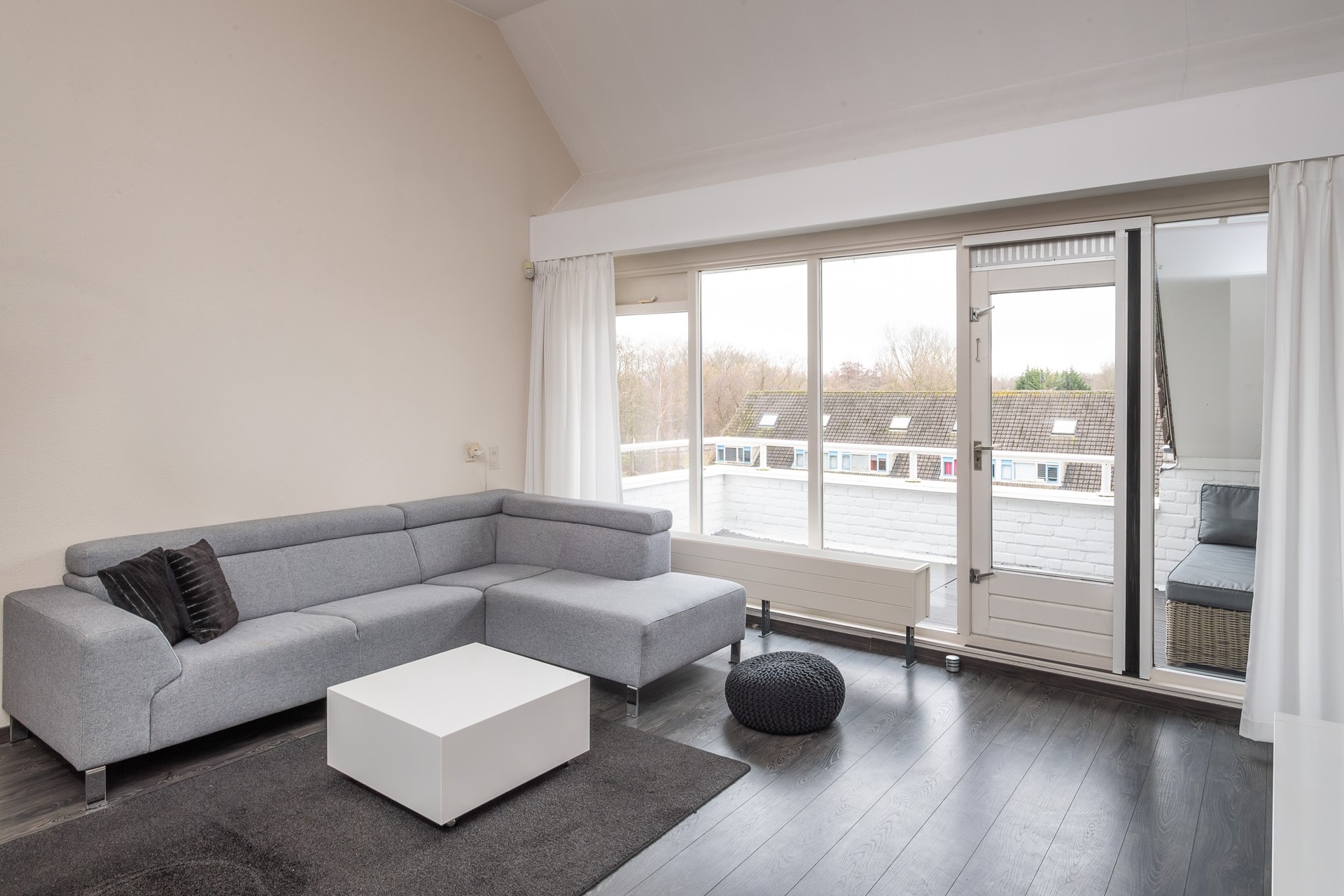 Vanuit de woonkamer is het zonnige terras bereikbaar. De ligging op het zuidwesten zorgt ervoor dat u hier optimaal profiteert van de middag- en avondzon – een heerlijke plek om te ontspannen.