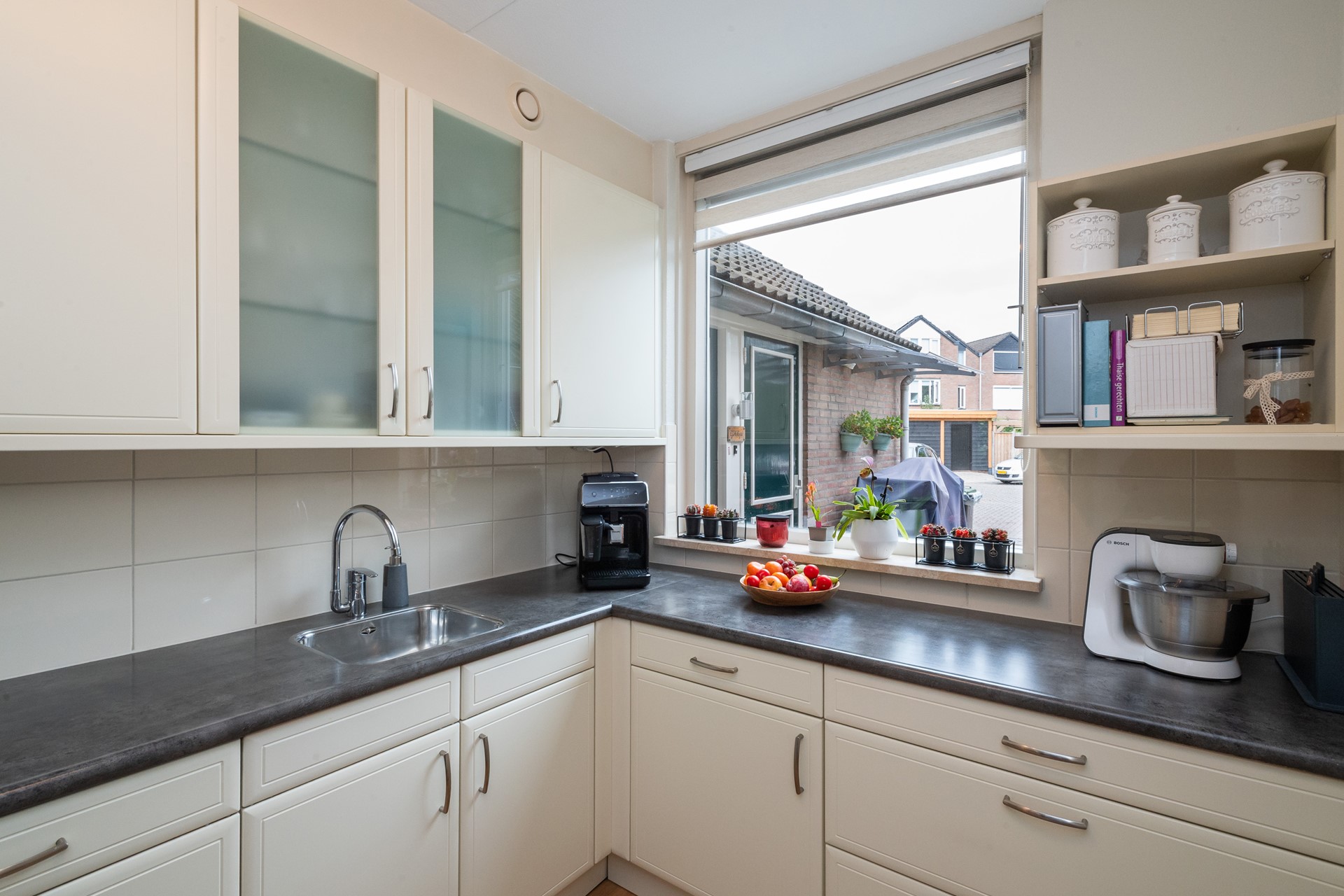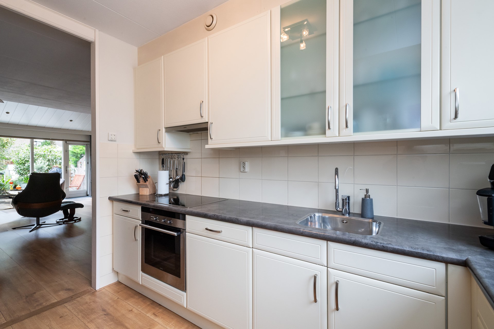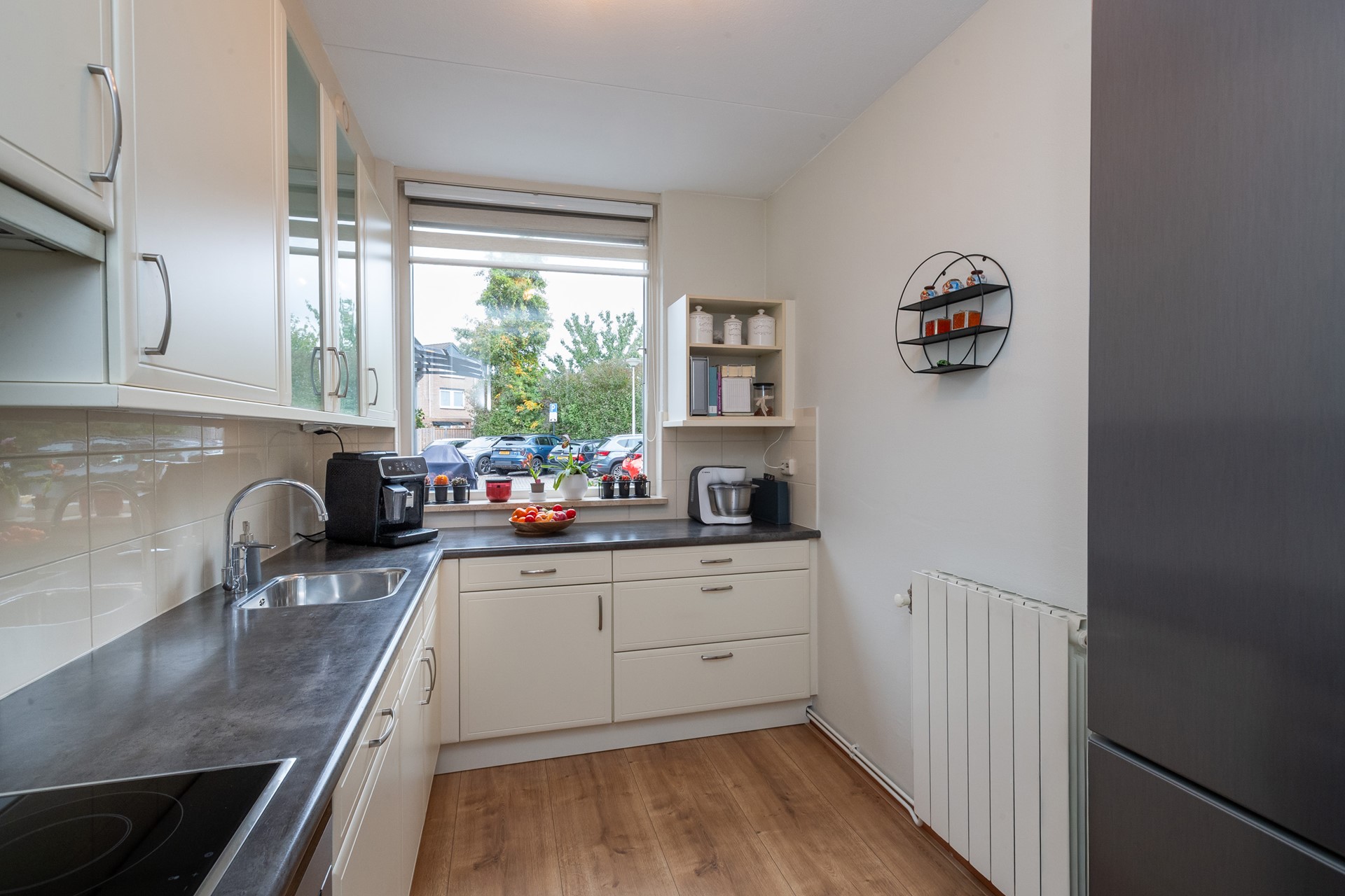 Via de voortuin kom je bij de berging en entree van de woning met garderobe- en meterkast. In de hal vind je het toilet en de trapopgang. De woonkamer is ruim en door de grote raampartijen is er veel natuurlijk licht in de woning. Een deur geeft hier toegang tot de tuin. De keuken is voorzien van een keramische kookplaat met vlakscherm afzuigkap, oven en vaatwasmachine.