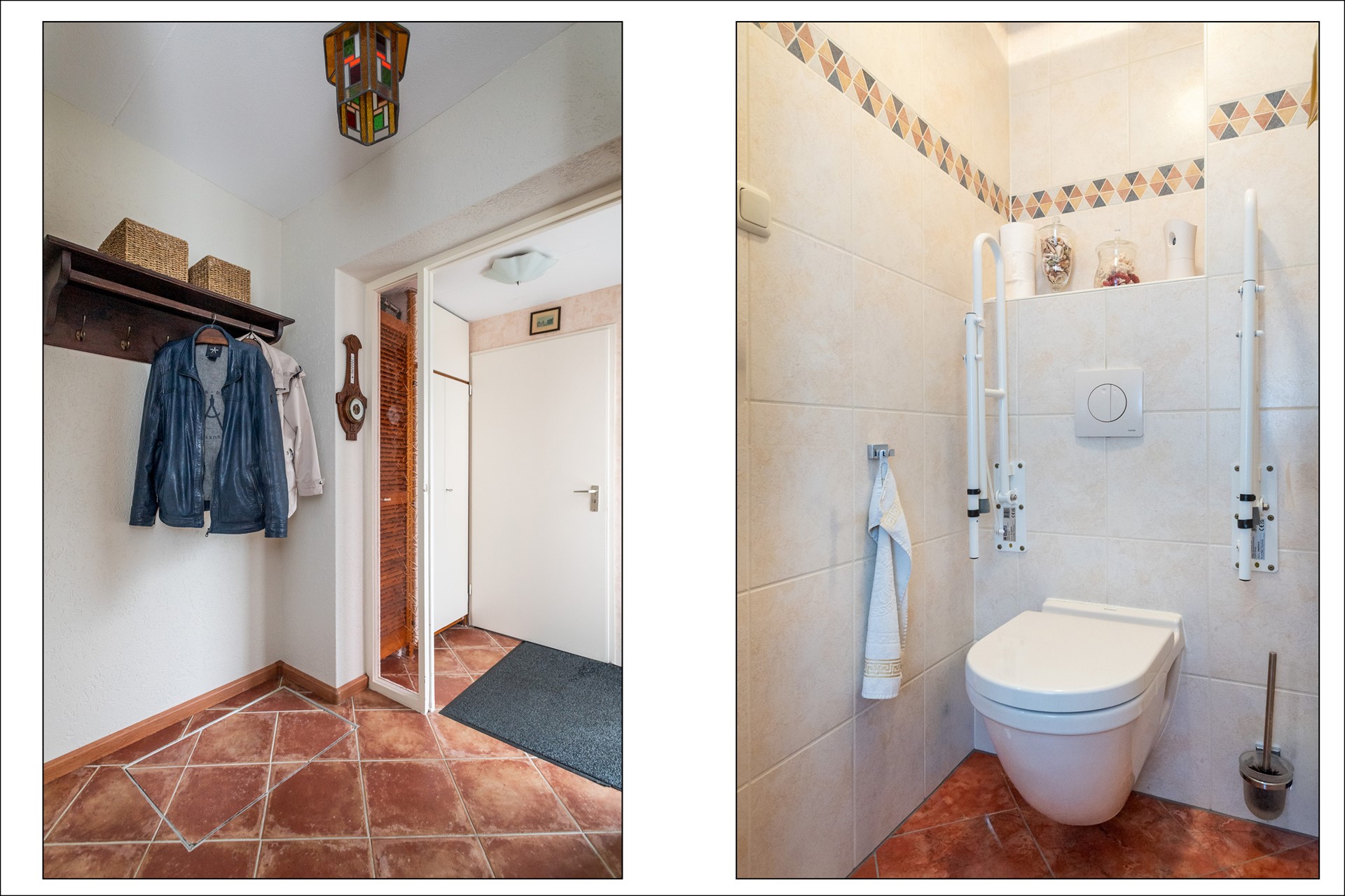 Ideaal is de berging in de voortuin, die zowel via buiten als binnen bereikbaar is.