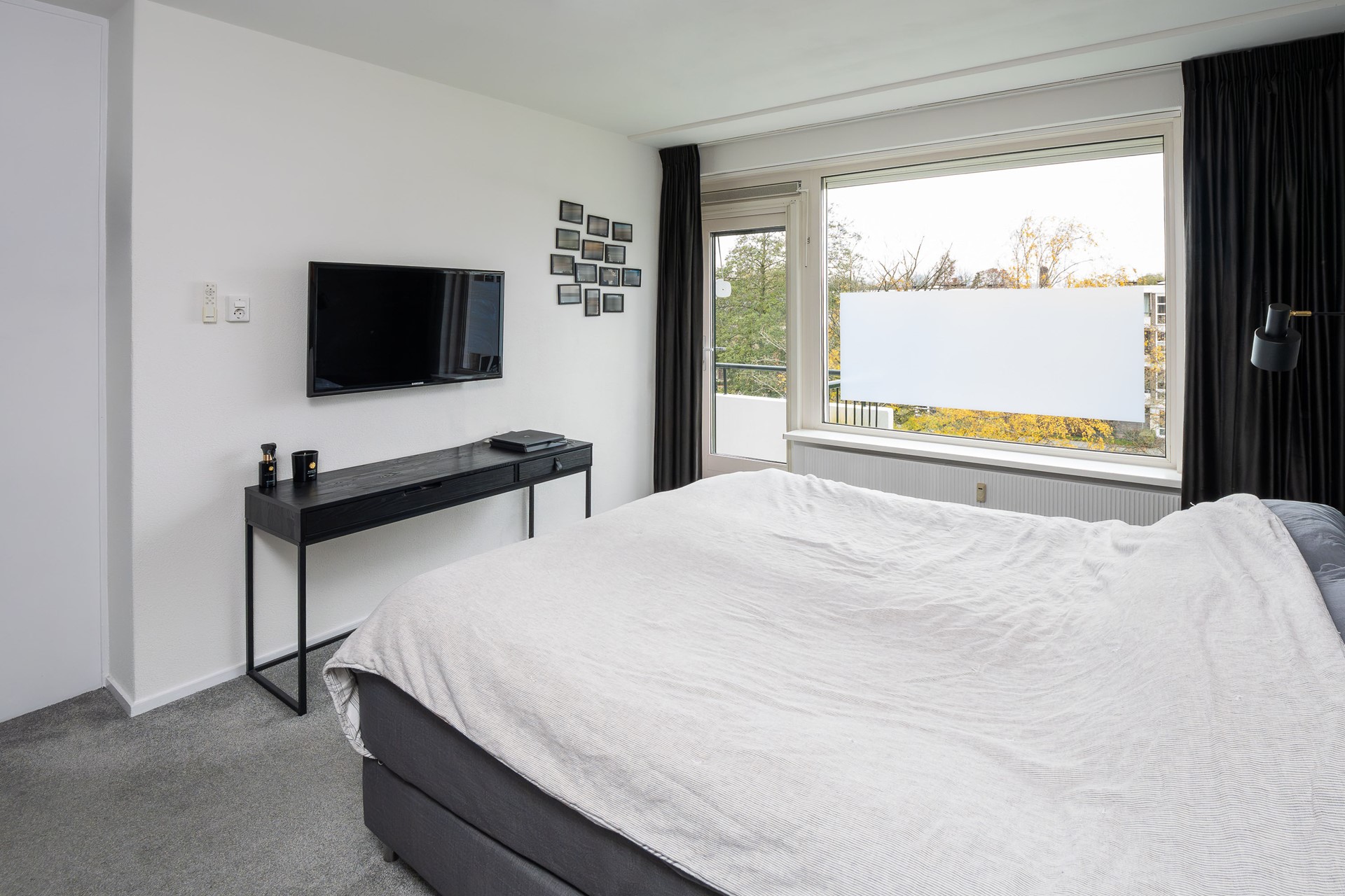 Ruime slaapkamer met twee vaste kasten en deur naar 2e balkon op westen.