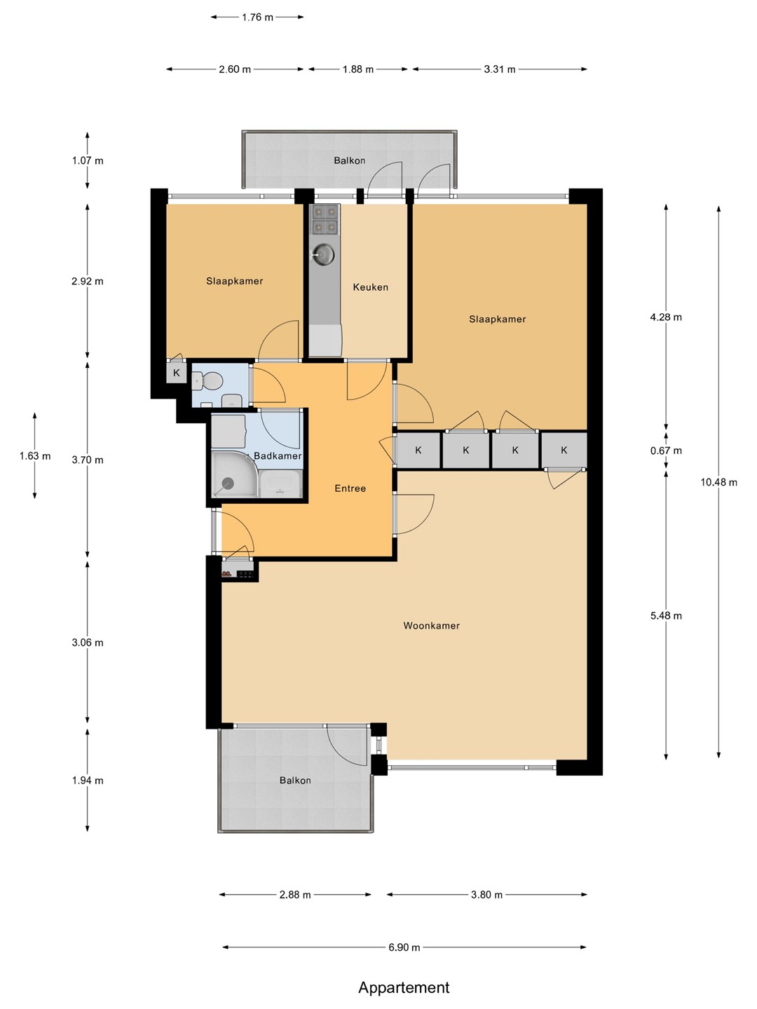 | Aantal kamers | 3 (waarvan 2 slaapkamers) |