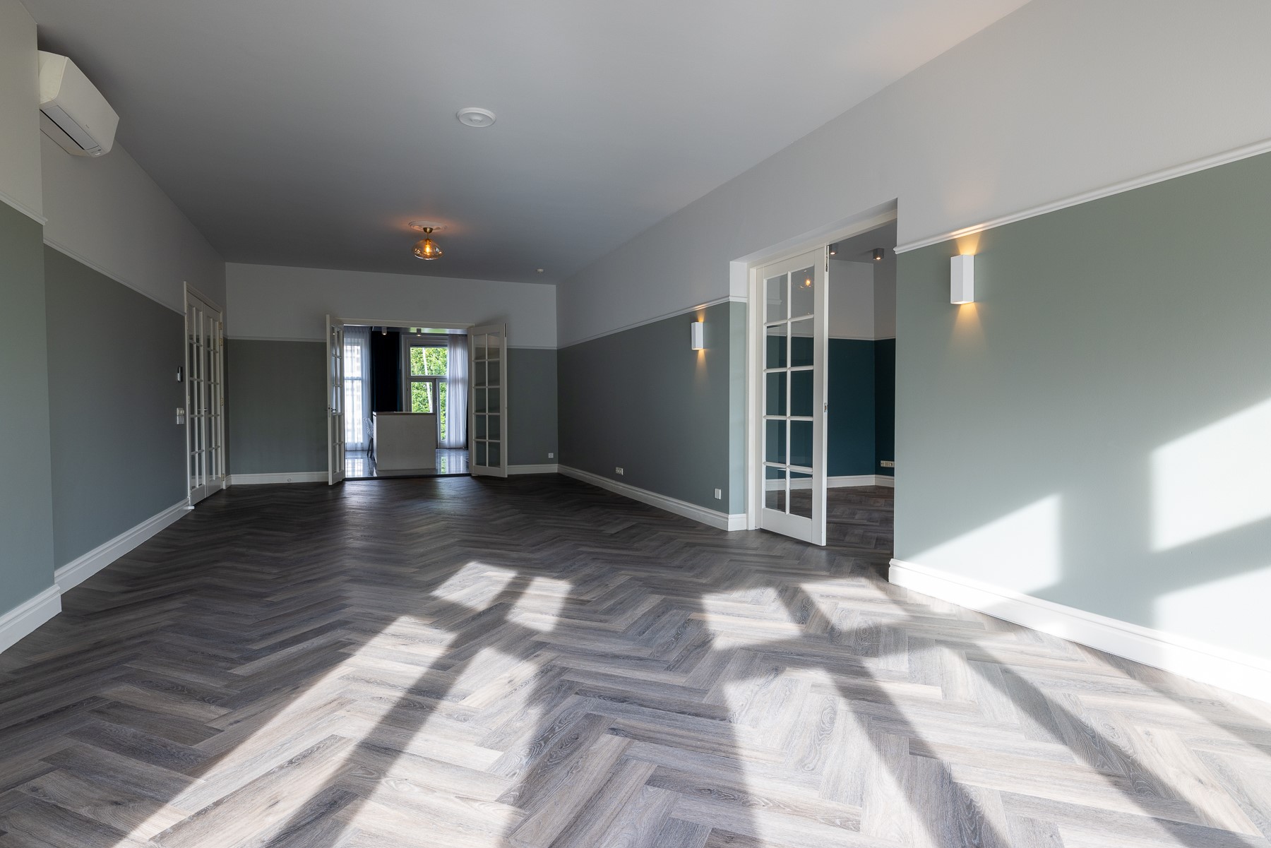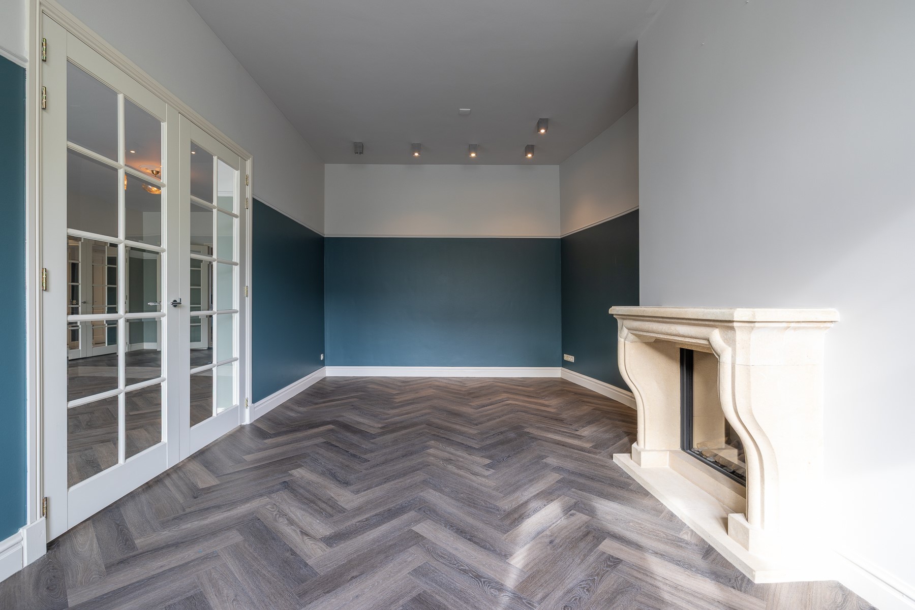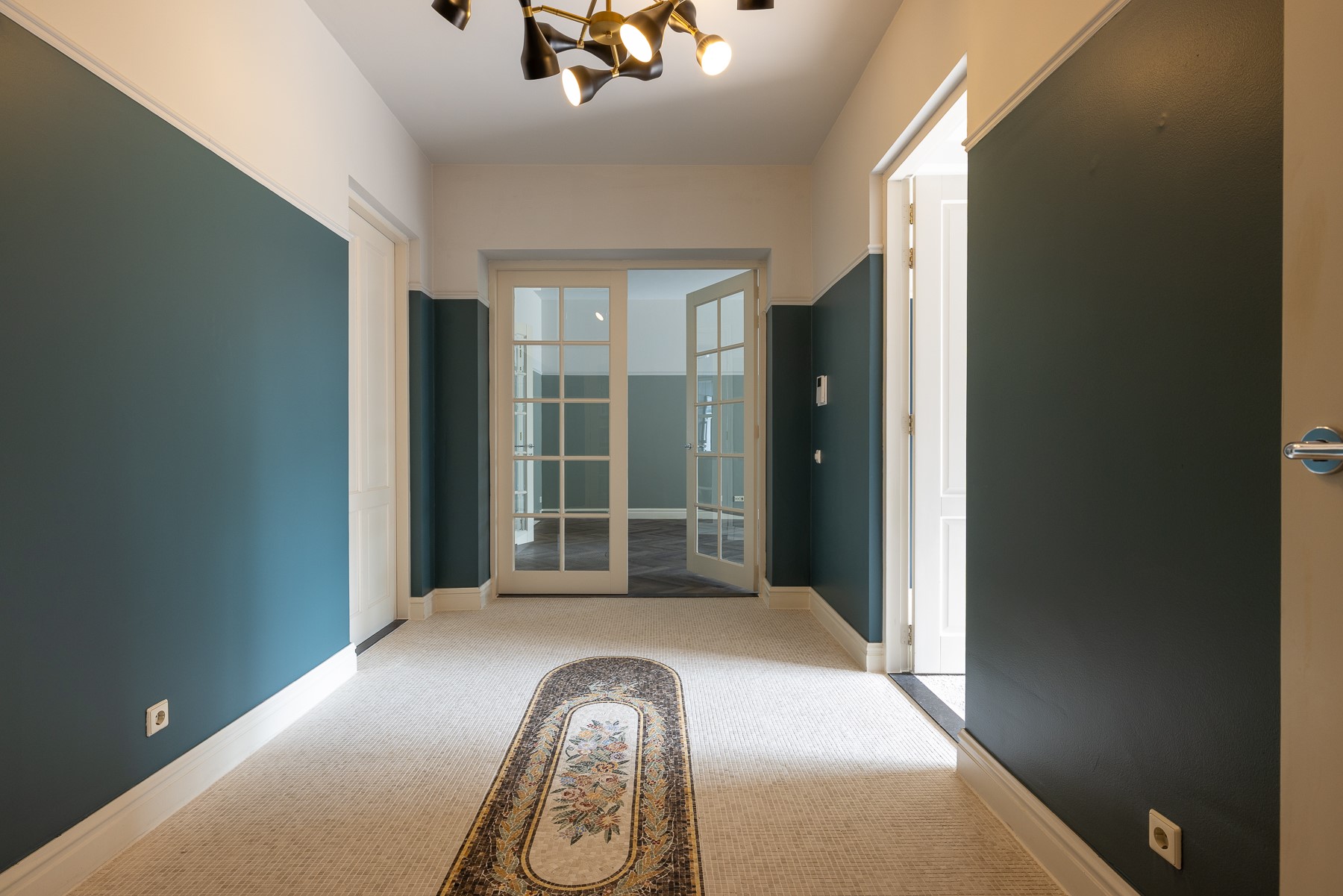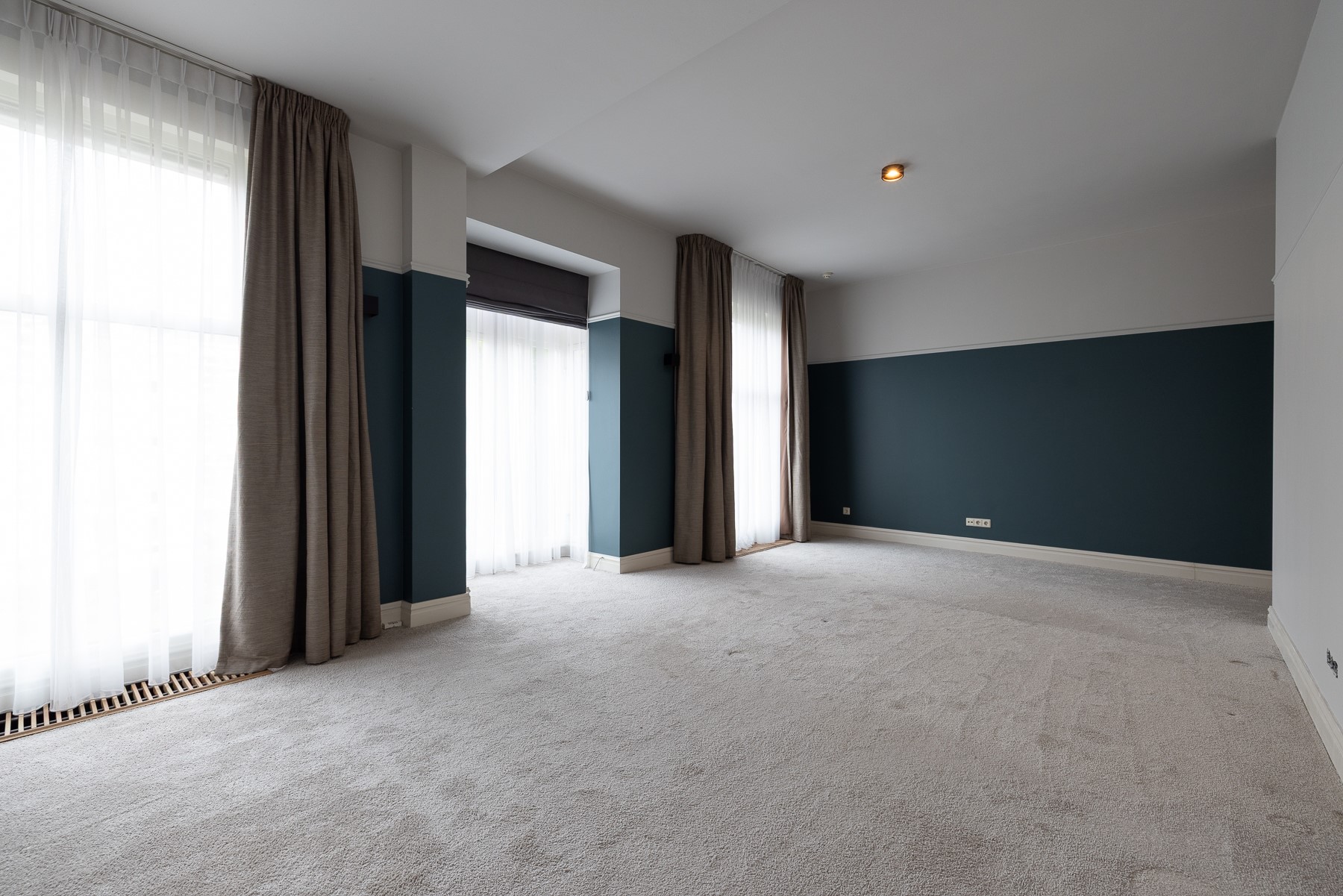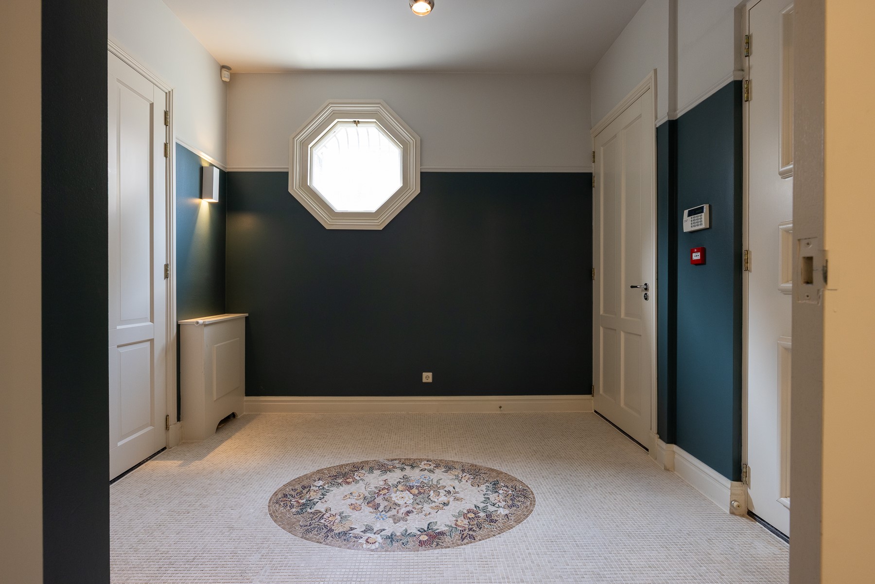 Entree, hal, toilet met fontein, wasruimte met cv-opstelling, hal, slaapkamer met openslaande deuren naar zonnig terras. Aangrenzende luxe badkamer. Hoofdslaapkamer met aangrenzende luxe badkamer, enorme woonkamer met dubbele deuren naar aangrenzende tv-kamer of 3e slaapkamer met open haard. Imposante woonkeuken met 2e open haard, toegang naar 2e balkon en luxe nieuwe keukenopstelling voorzien van alle denkbare apparatuur zoals stoomoven en aparte grote wijnkast. Aparte logeer- of werkkamer met toegang tot aparte entree middels trappenhuis.