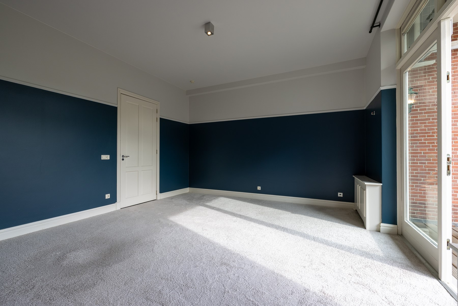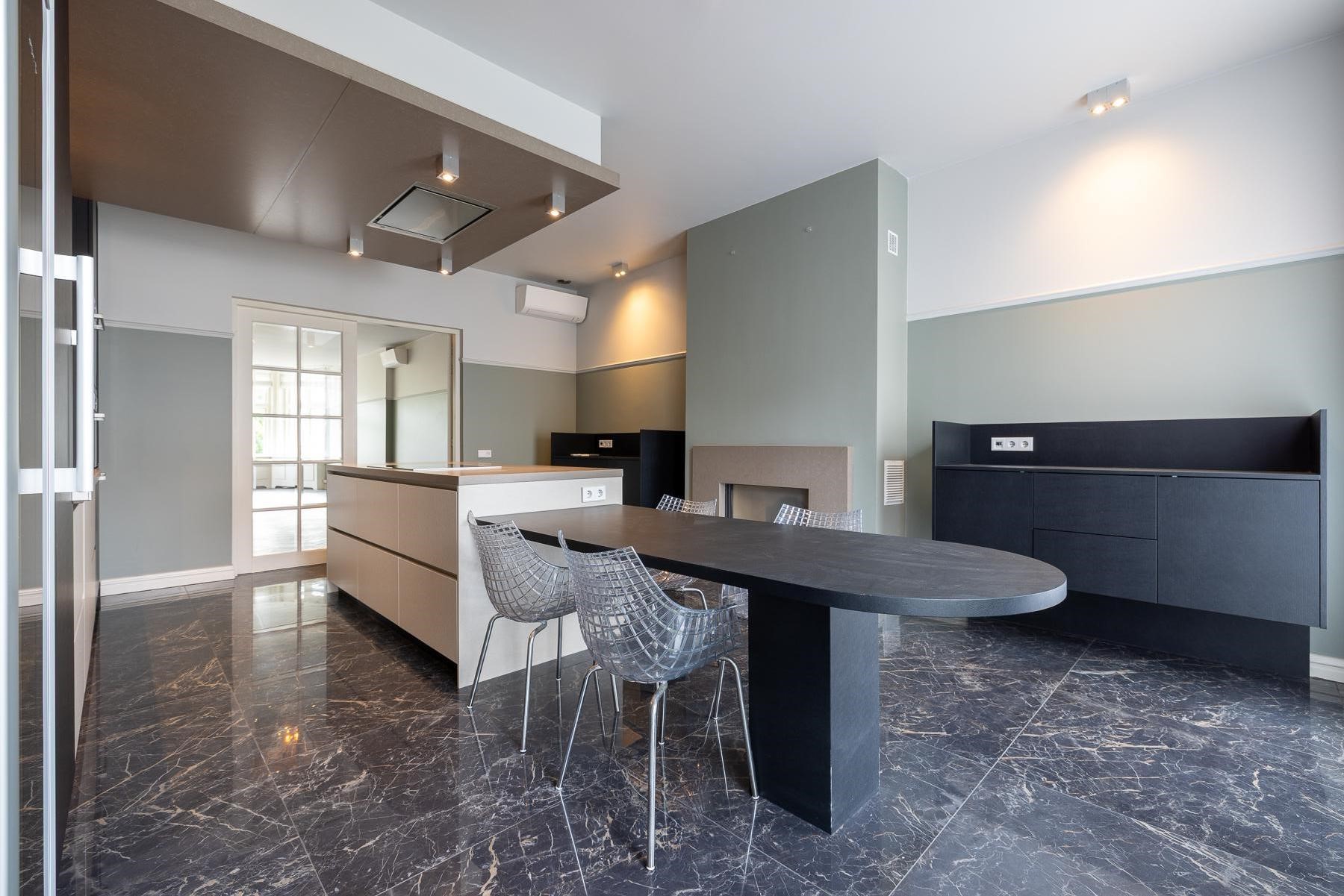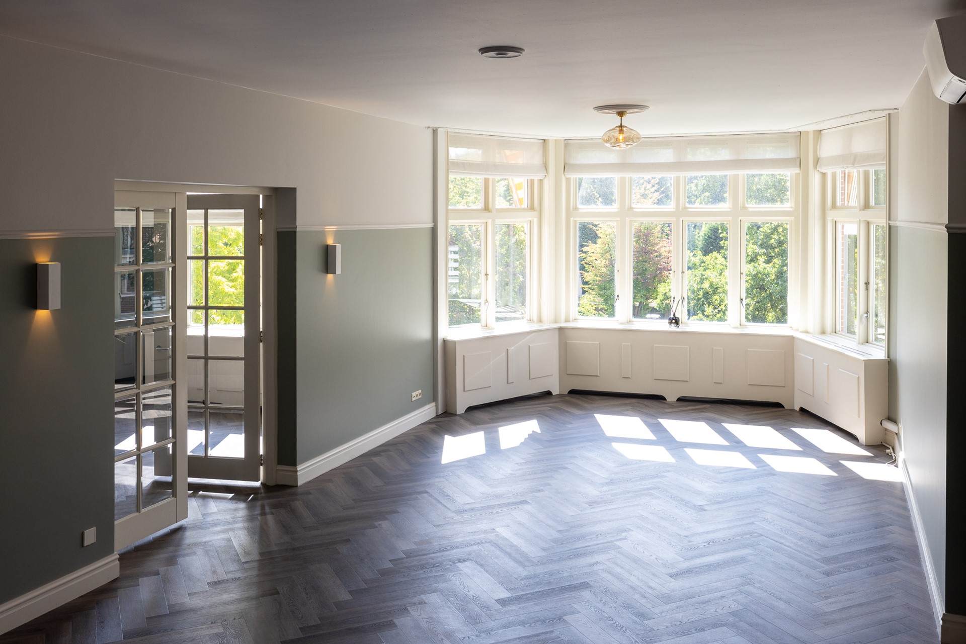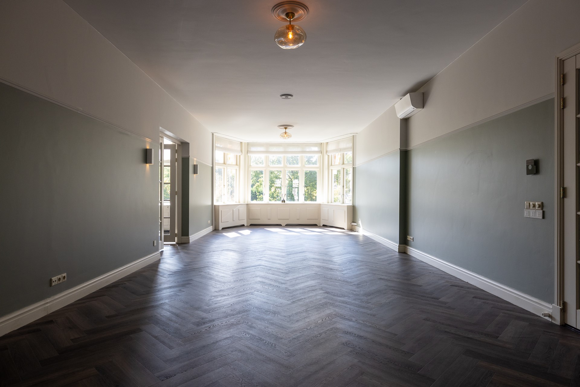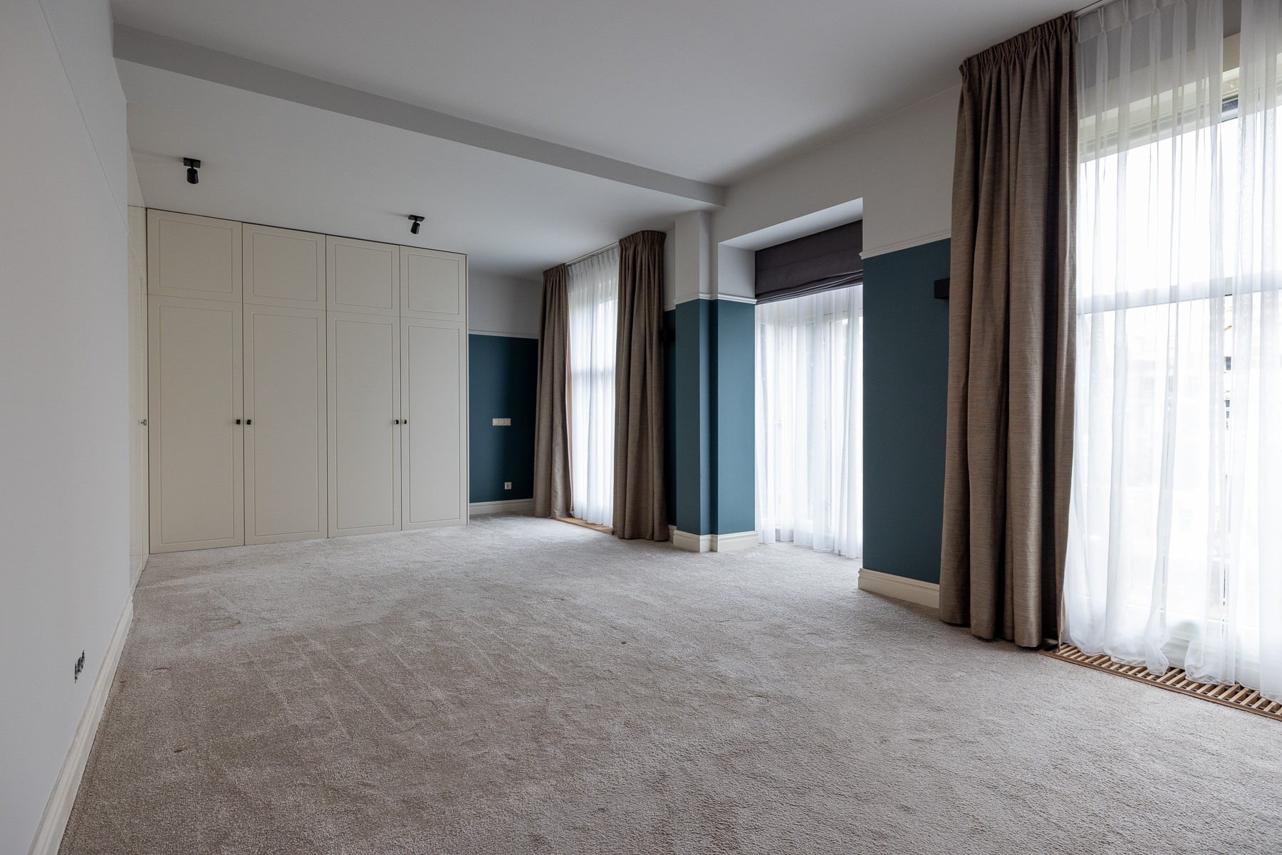 Entree, hal, toilet met fontein, wasruimte met cv-opstelling, hal, slaapkamer met openslaande deuren naar zonnig terras. Aangrenzende luxe badkamer. Hoofdslaapkamer met aangrenzende luxe badkamer, enorme woonkamer met dubbele deuren naar aangrenzende tv-kamer of 3e slaapkamer met open haard. Imposante woonkeuken met 2e open haard, toegang naar 2e balkon en luxe nieuwe keukenopstelling voorzien van alle denkbare apparatuur zoals stoomoven en aparte grote wijnkast. Aparte logeer- of werkkamer met toegang tot aparte entree middels trappenhuis.