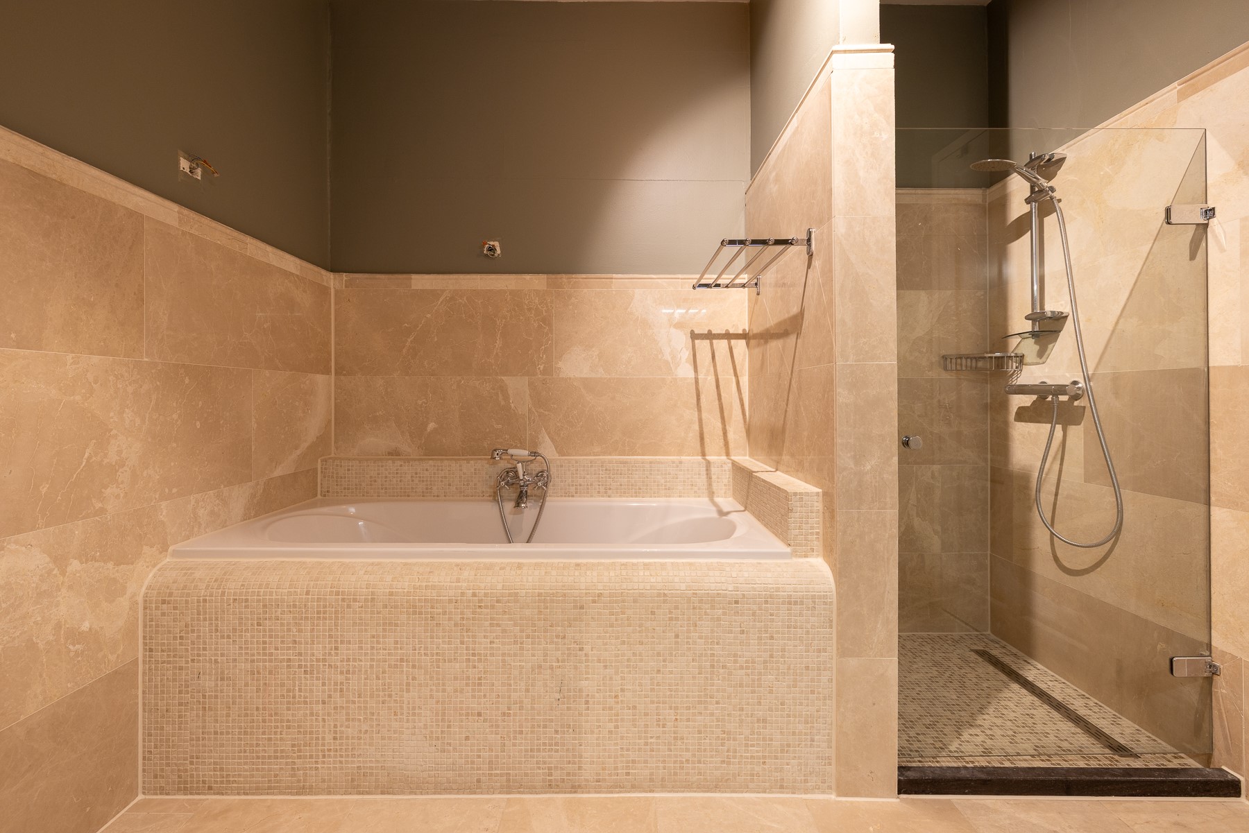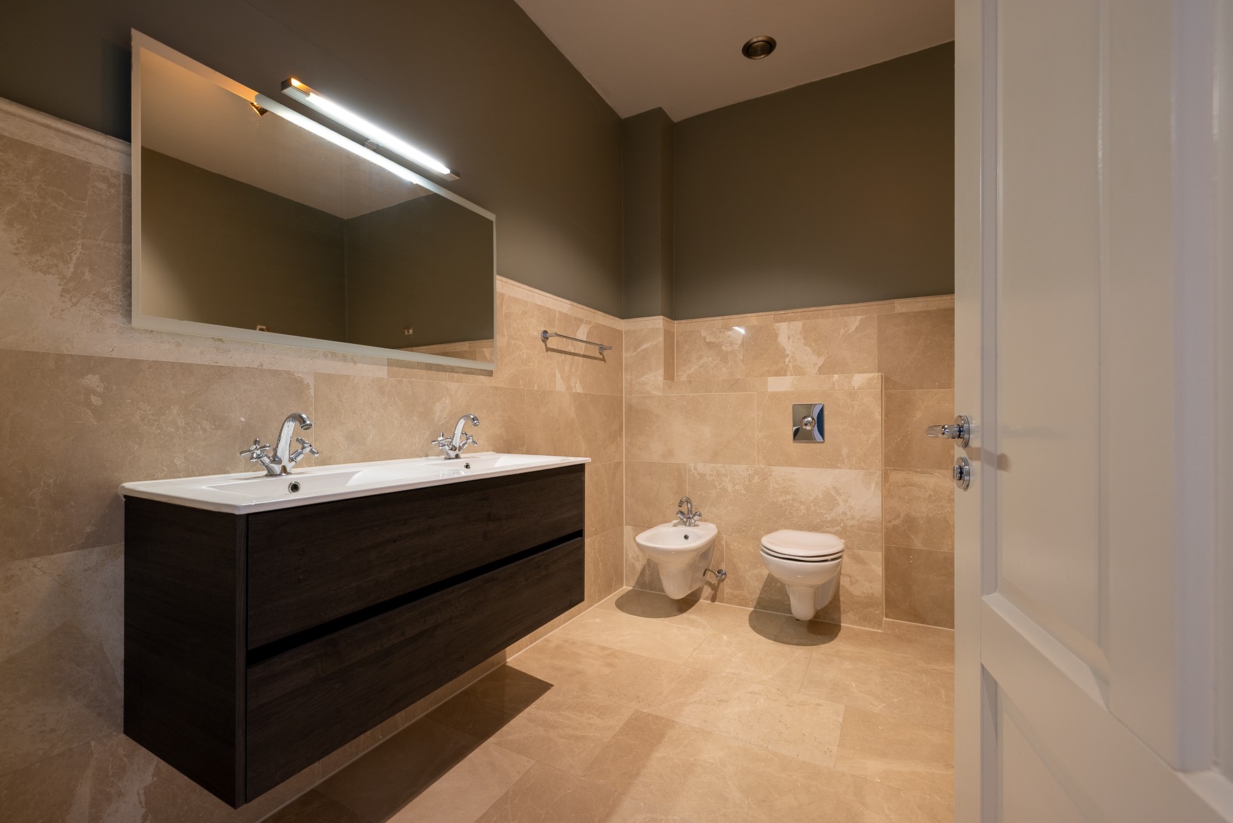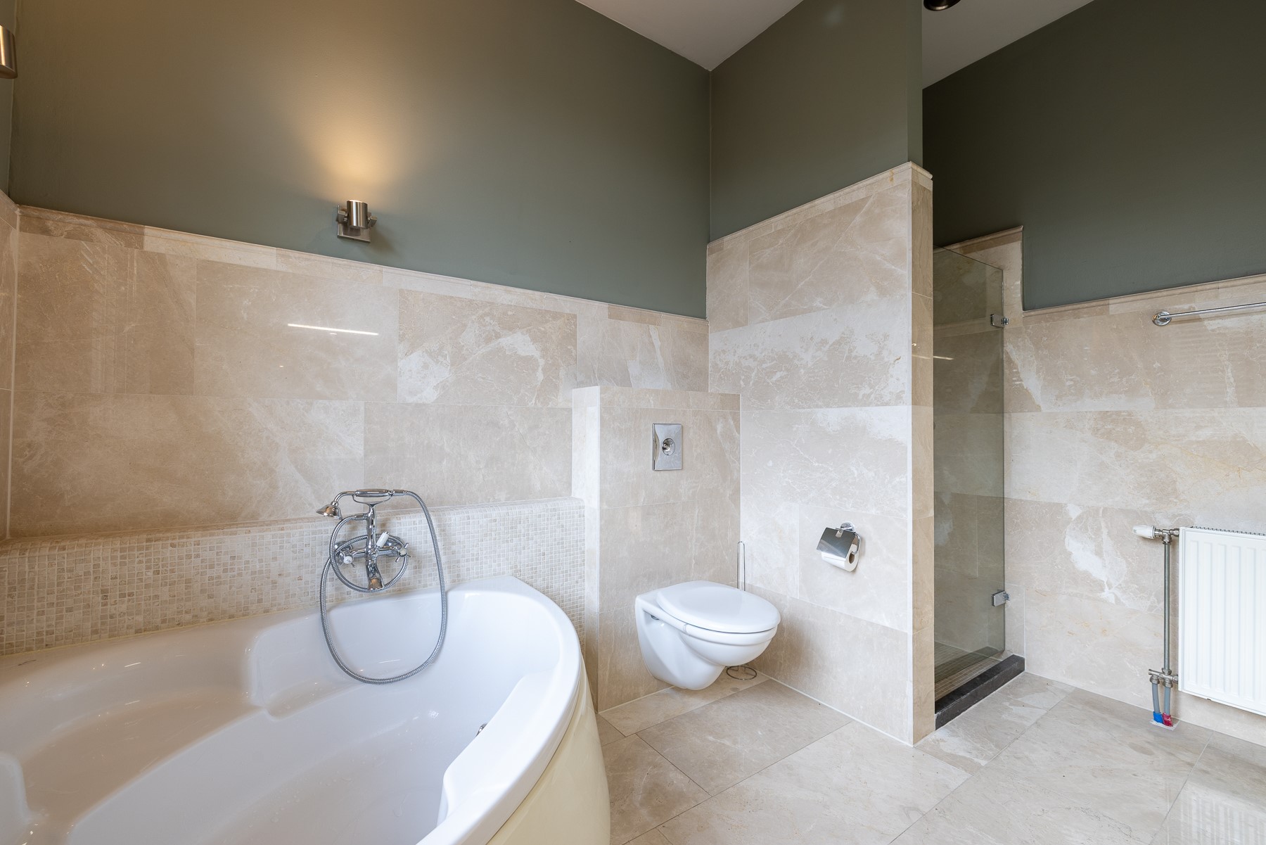 | Badkamervoorzieningen Badkamer 1 | Douche Dubbele wastafel Ligbad Toilet |